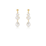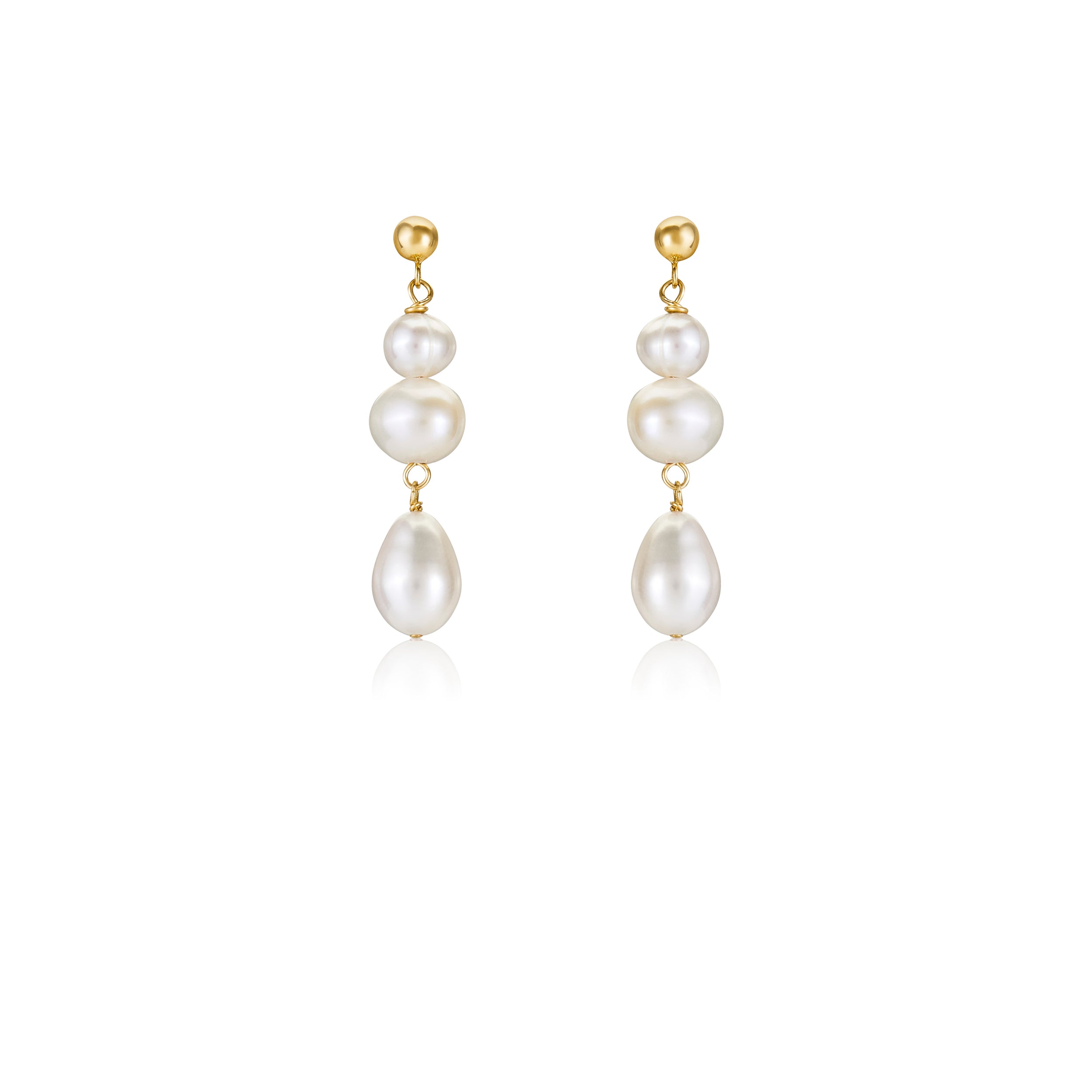 The Elizabeta pearl drop earrings elegantly fall from gold filled ear studs, and are adorned with graduating lustrous ivory pearls.