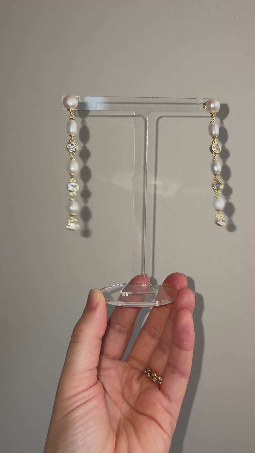 Materials // Freshwater pearl, Cubic Zirconia, 18k gold PVD plating on brass (highly tarnish resistant)