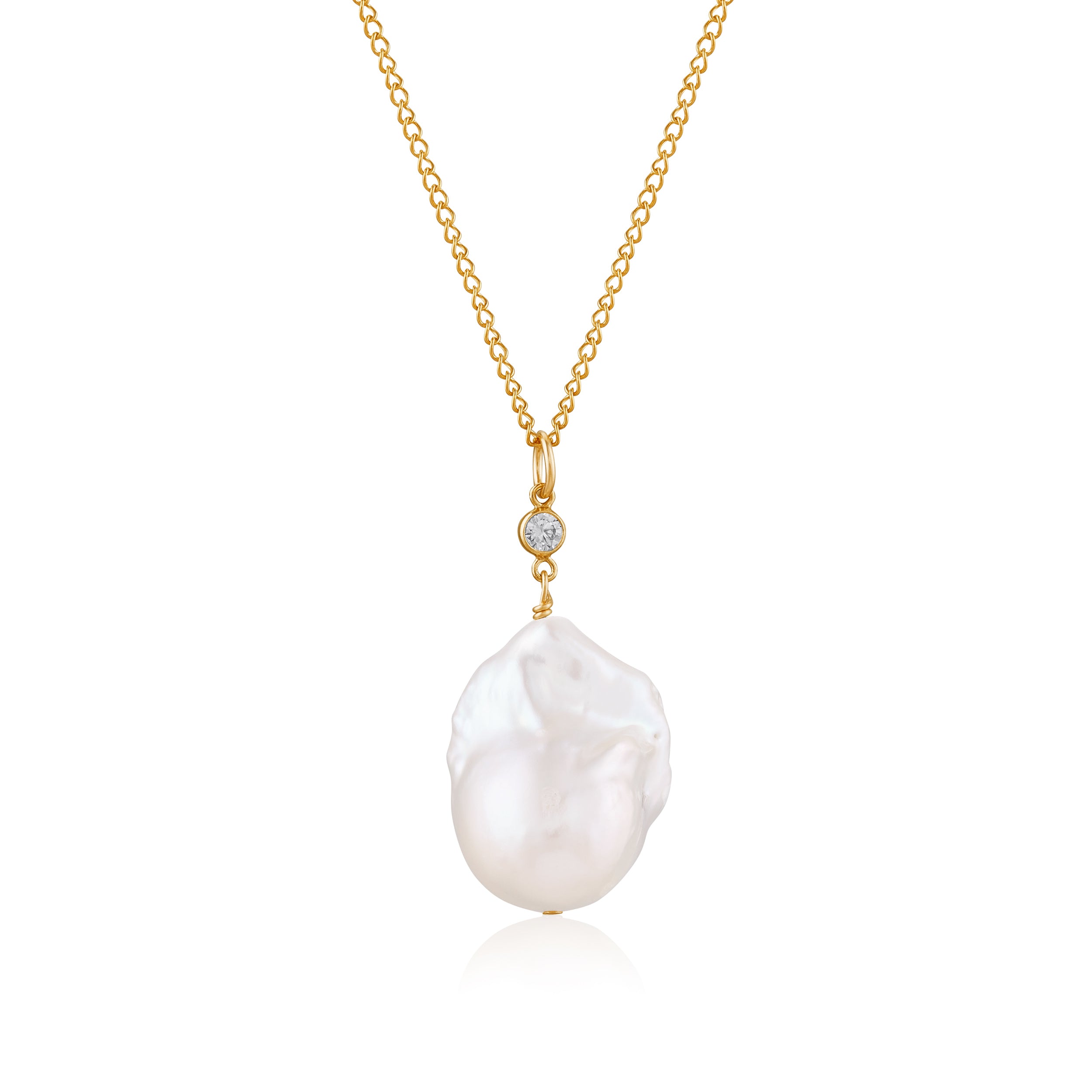 The Connie necklace is modern and refined; A versatile chain necklace designed to sit beautifully on it's own, or when layered with your other jewellery. A lustrous baroque pearl falls from a delicate, sparkling cubic zirconia charm.