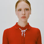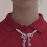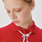 A strand of ethereal freshwater pearls with an off-centre handcrafted crystal, floral bow that sparkles around your neck. Add a subtle touch of romance and fun to your outfit.