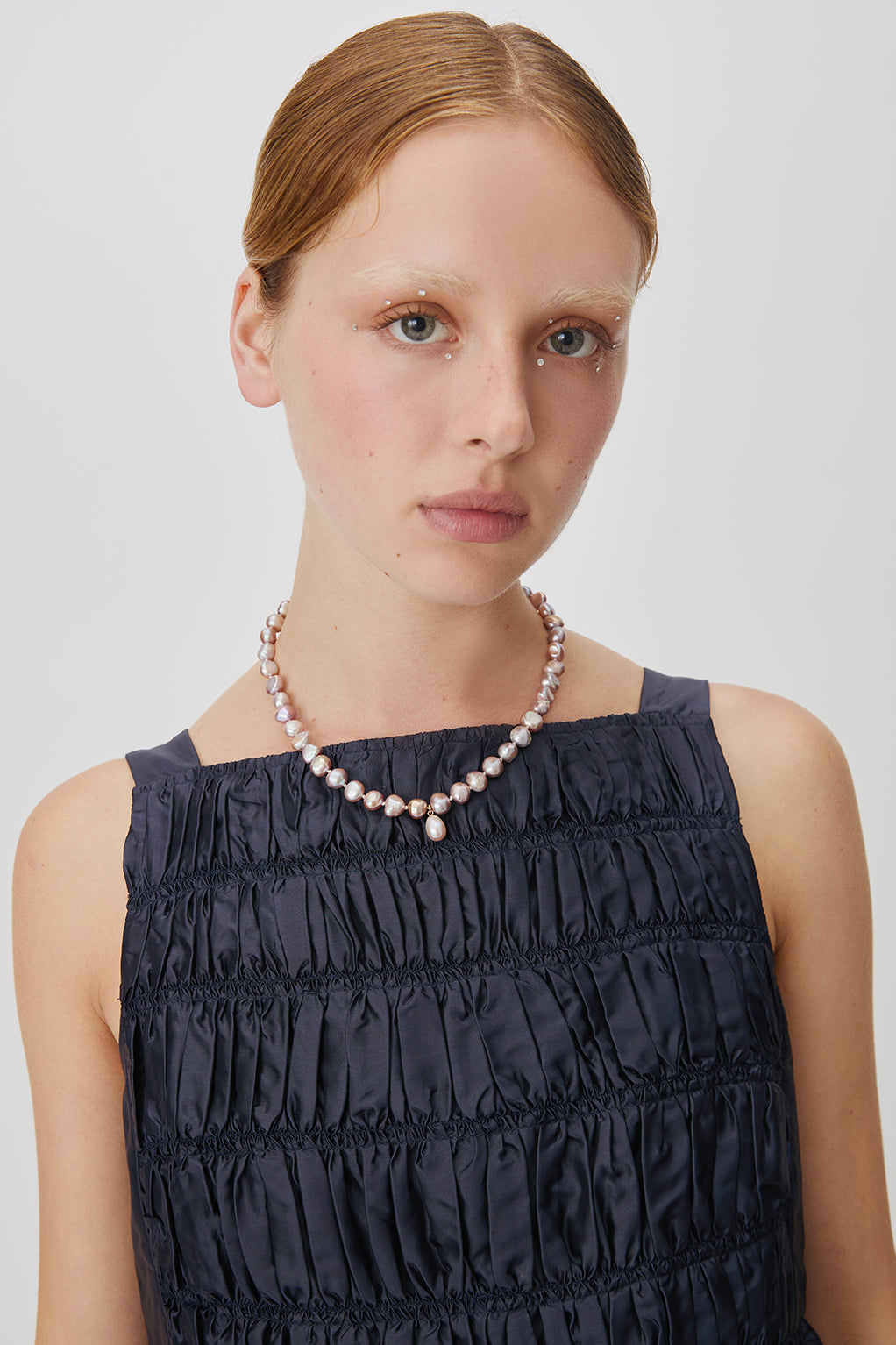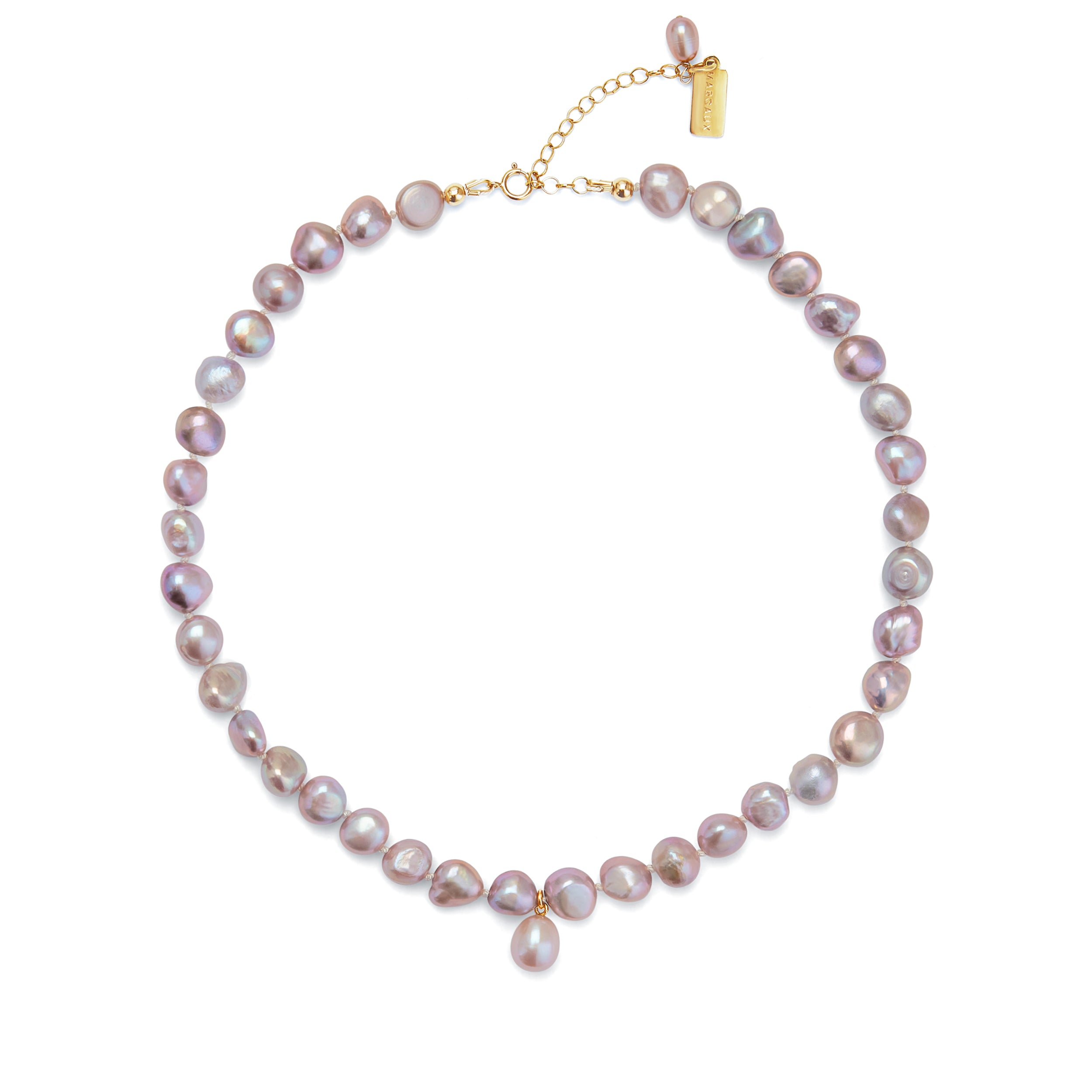 Hestia is a romantic and ultra modern pearl necklace. With hand-knotted freshwater pearls in a delicious shade of lavender pink, that have been finished with a lustrous teardrop pearl pendant at the centre. An elevated piece of jewellery that is guaranteed to attract compliments.