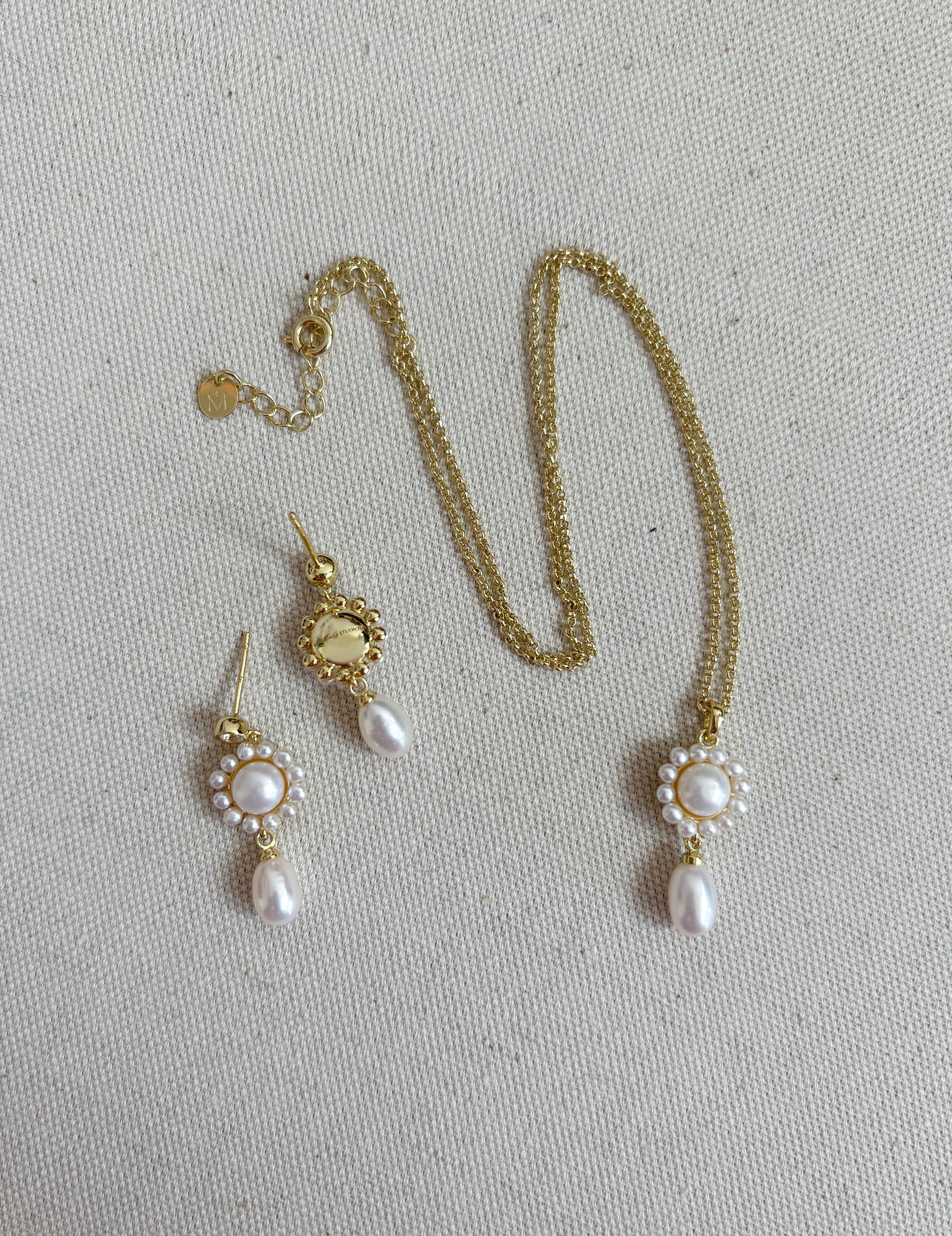 Materials // Freshwater pearl, 14k gold PVD plating on Stainless Steel (highly tarnish resistant)
