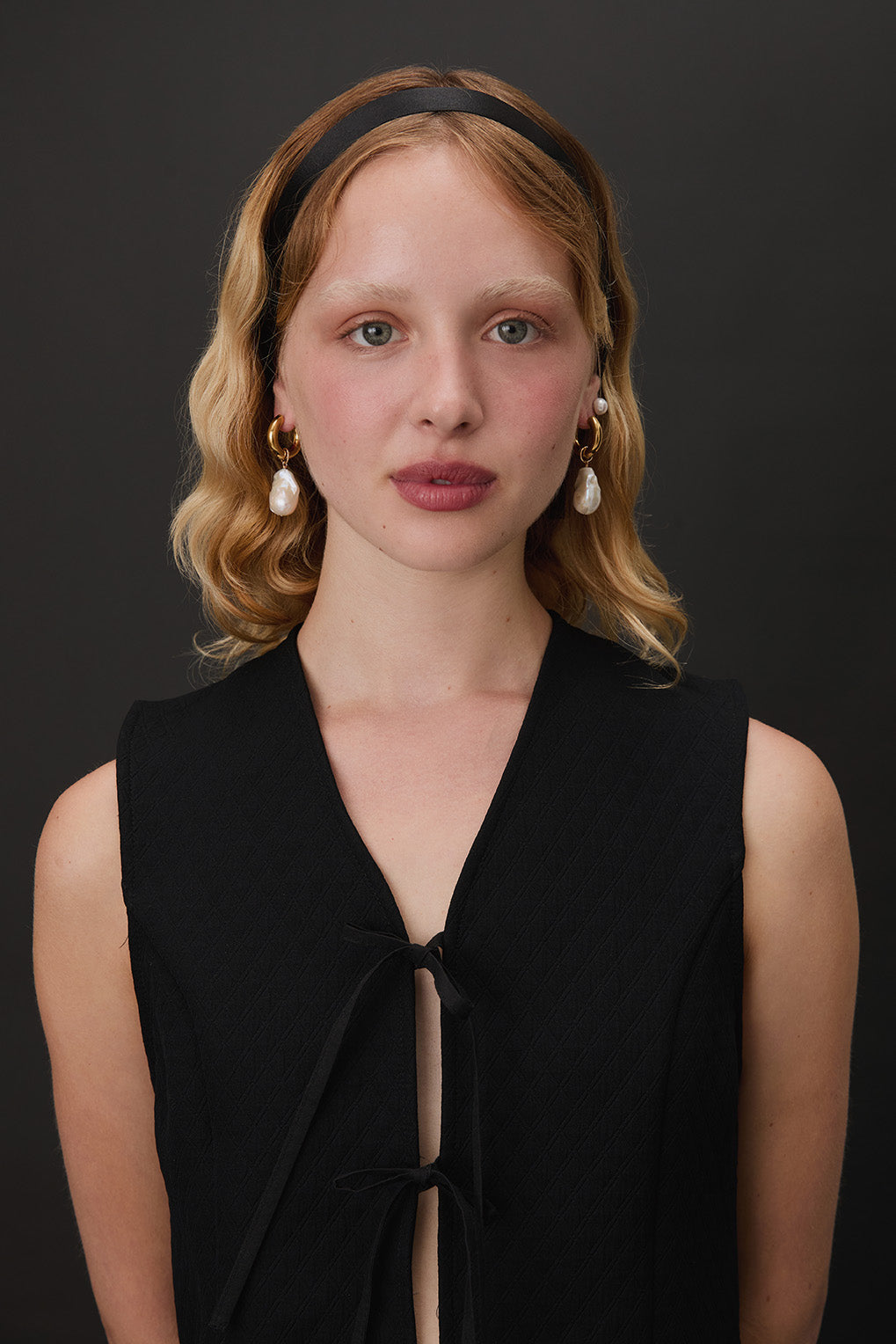 Materials // Natural freshwater pearl, Stainless Steel hoop earrings in vacuum plated gold finish (highly tarnish resistant & hypoallergenic), 14k gold-filled details