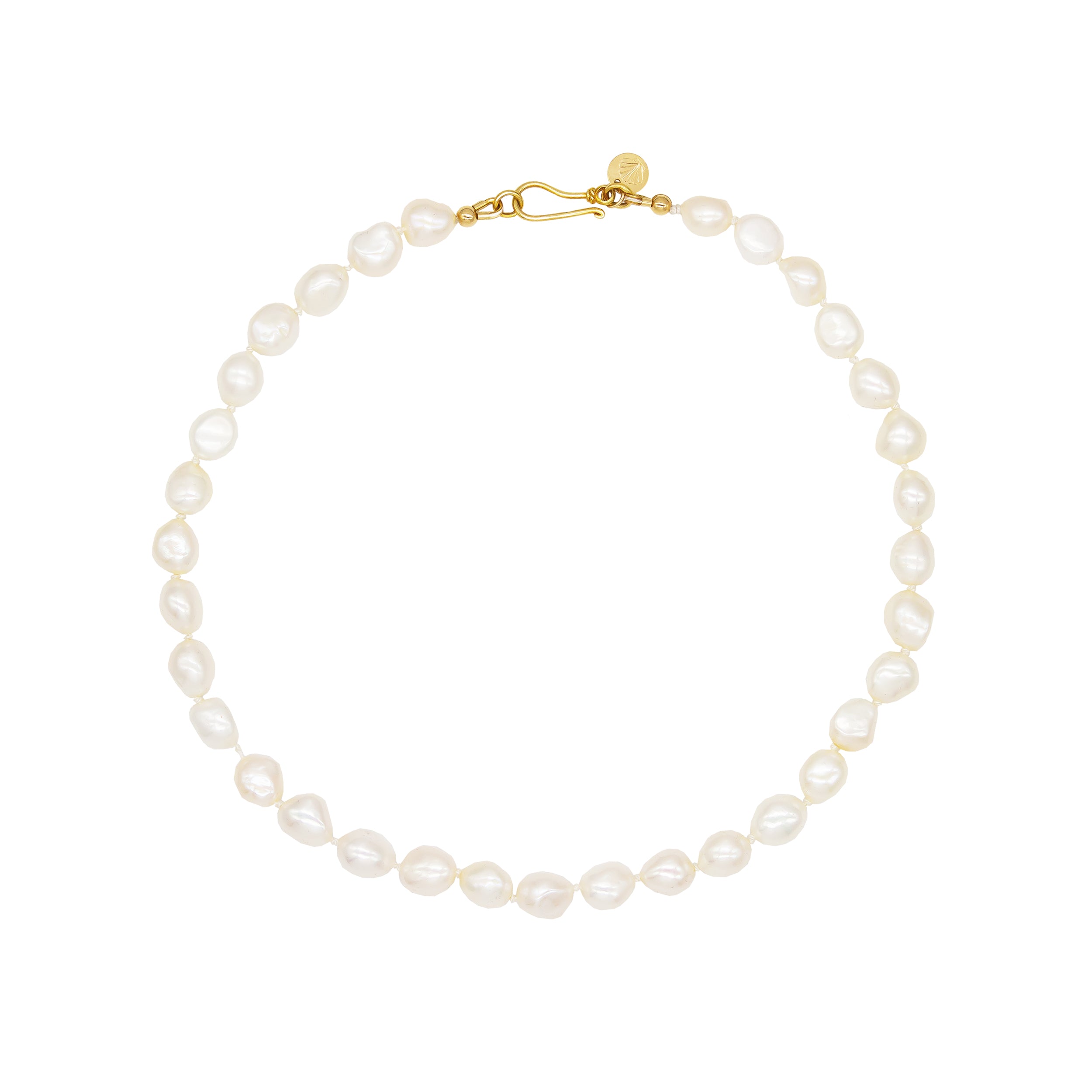 Materials // Freshwater baroque Pearls, nylon silk thread, 24k Gold Vermeil hook & eye clasp and gold-filled details